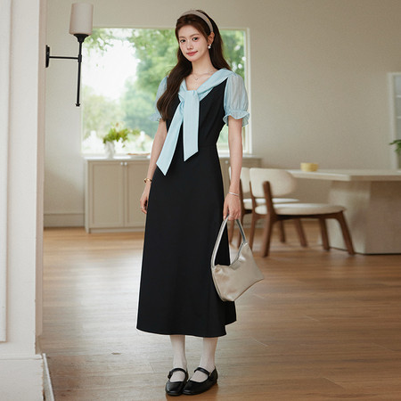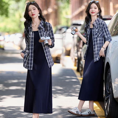 夏秋新款两件套裙吊带连衣裙长袖衬衣套装裙